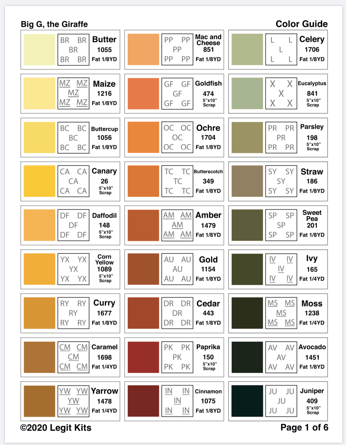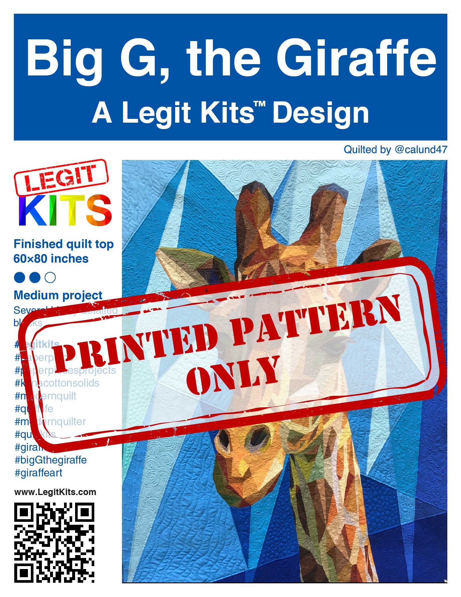Bring a bit of the exotic to your space with Big G the Giraffe. This is a premium design with everything a foundation paper piece quilter could want. Our fully printed pack contains color maps, fabric lists, an assembly guide, and the full pattern. The stunning finished quilt top measures 60 inches wide by 80 inches long.