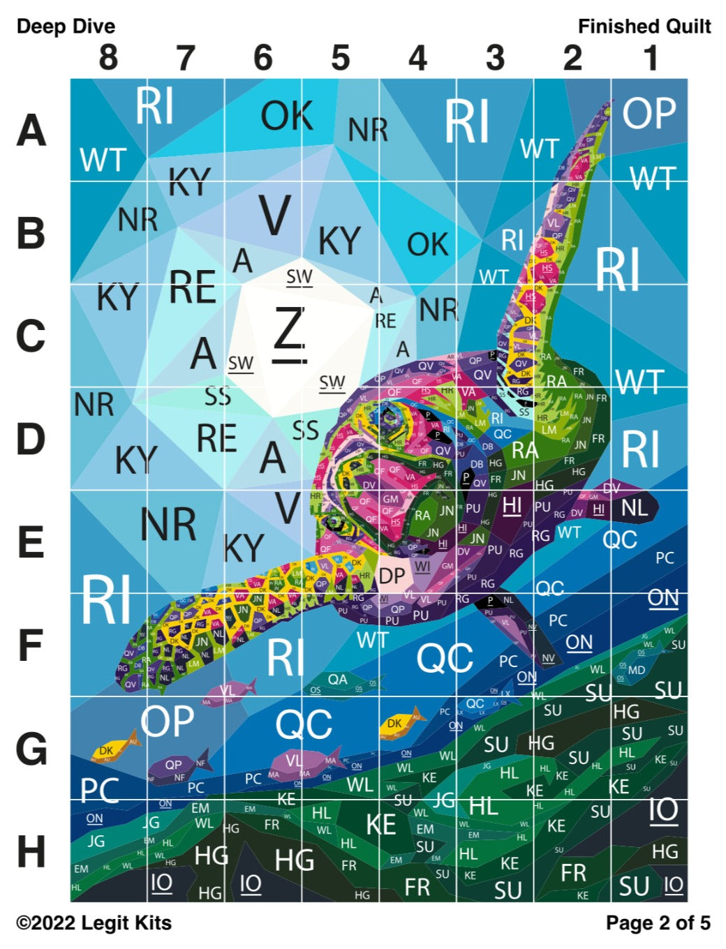 Immerse yourself in the ocean and swim with a beautiful sea turtle. Deep Dive is a premium design with everything a foundation paper piece quilter could want. This luxurious kit contains color maps, fabric lists, an assembly guide, the full pattern printed on foundation paper, and generous cuts of 54 clearly labeled Robert Kaufman Kona Cotton Solids to complete this full sized, 60 inch wide by 80 inch tall quilt top.