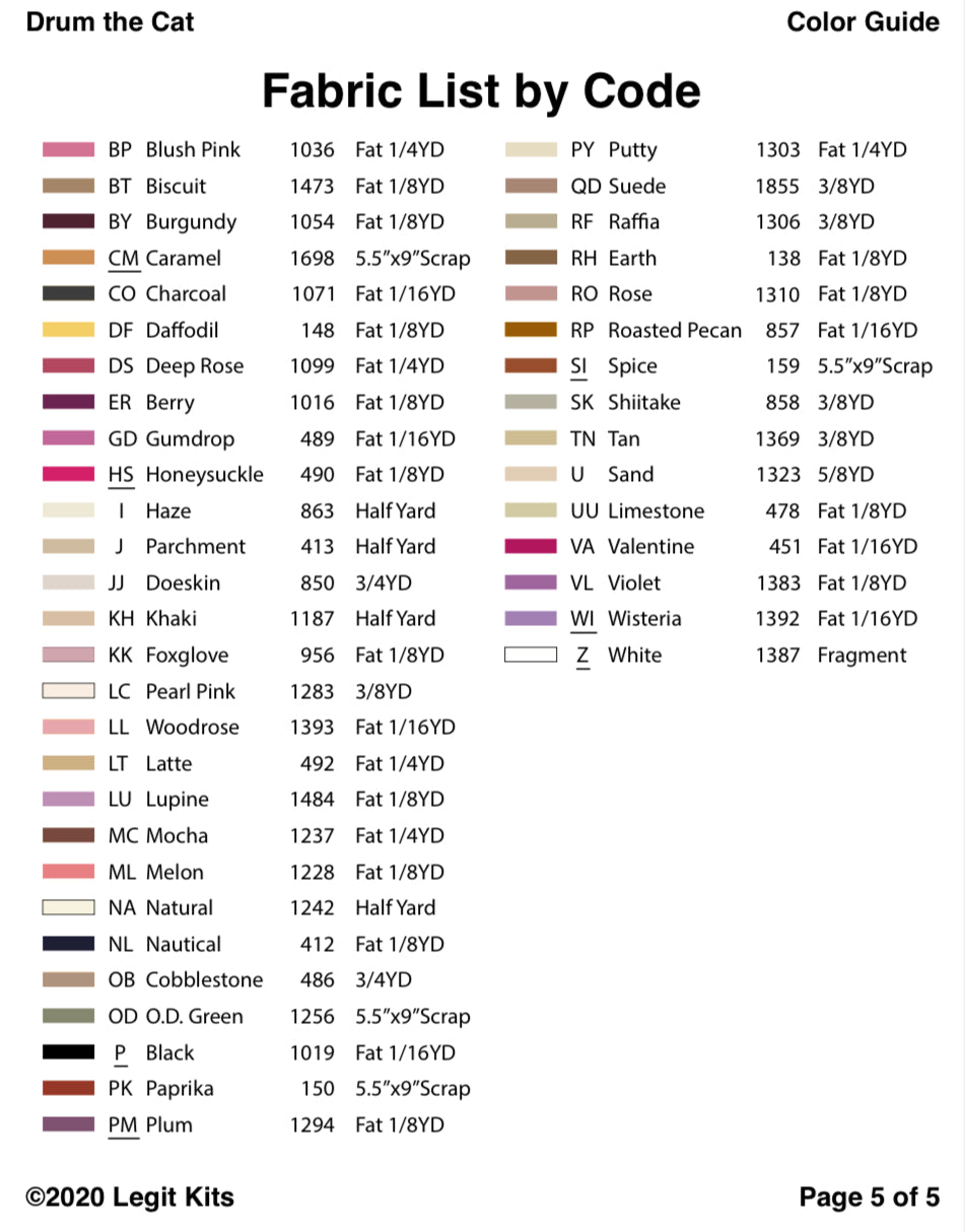 What better way to cozy up a room than with Drum the Cat. Drum is a premium design by the globally famous artist, Liam Brazier. This Legit Kits product comes with everything a foundation paper piece quilter could want. Our kit contains color maps, fabric lists, an assembly guide, the full pattern printed on foundation paper, and 43 different shades of Robert Kaufman Kona Cotton Solids to complete this full sized, 60 x 80 inch tall quilt top.