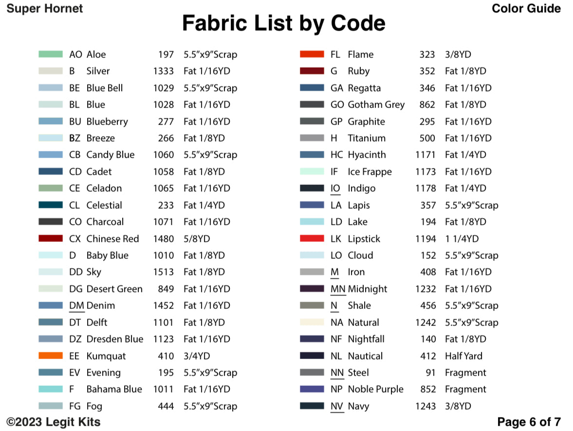 F-18 Hornet, a high flying work of art is ready for your studio. Load your machine and put the pedal to the metal on this luxurious quilt top kit which contains color maps, fabric lists, an assembly guide, the full pattern printed on foundation paper, and generous cuts of 68 clearly labeled Robert Kaufman Kona Cotton Solids to complete this full sized, 60 inch wide by 80 inch tall quilt top.