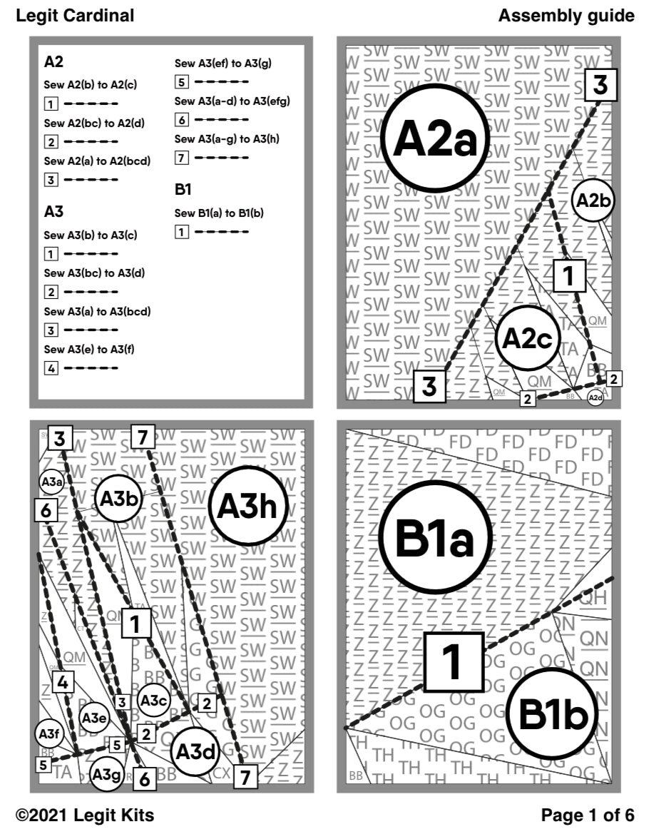 Legit Cardinal is a premium design with everything a foundation paper piece quilter could want. Designed with bright, wintry colors, this quilt top kit will make a fabulous wall hanging art piece, baby quilt, or surround this design with complimentary fabric to create a stunning full sized quilt top. This printed fabric pack contains color maps, fabric lists, an assembly guide, and the full pattern printed on foundation paper.