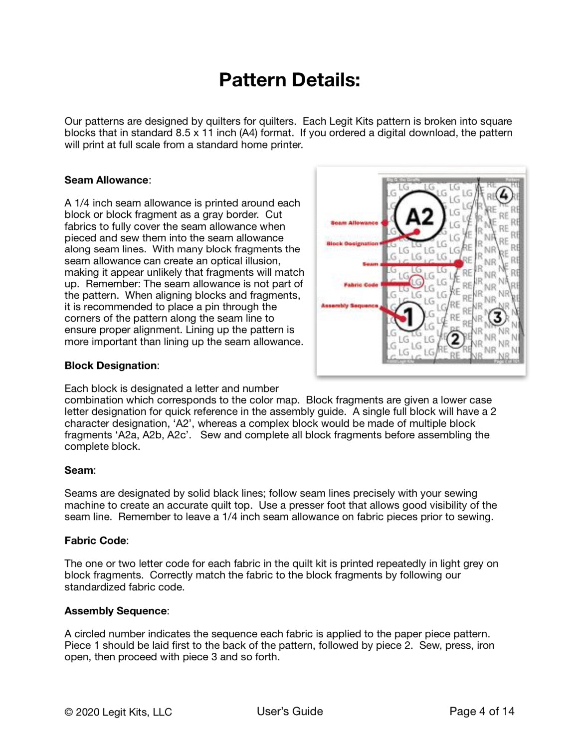 FULL KIT INCLUDED. Knowledge of foundation paper piecing is required to assemble this work of art. The basics of paper piecing are explained in a short photo enhanced guide included with your kit as well as further recommendations for learning this exciting technique.