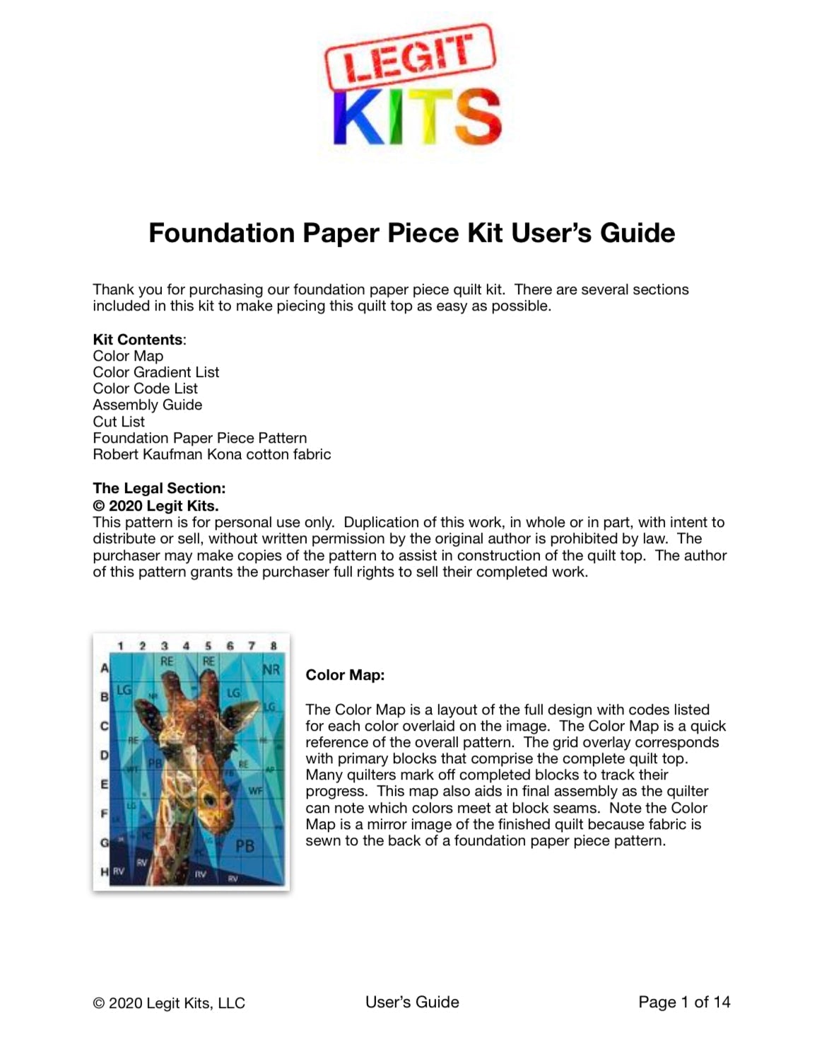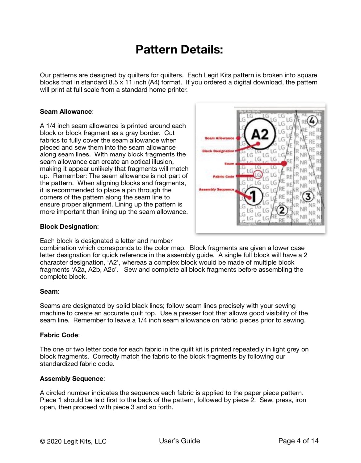 This is a printed pattern for a quilt top only. The fully printed pack is to be used one time only by the original purchaser. Knowledge of foundation paper piecing is required to assemble this work of art. A visual guide to paper piecing is included in this product, as well as a recommendation for a YouTube video which teaches this technique.