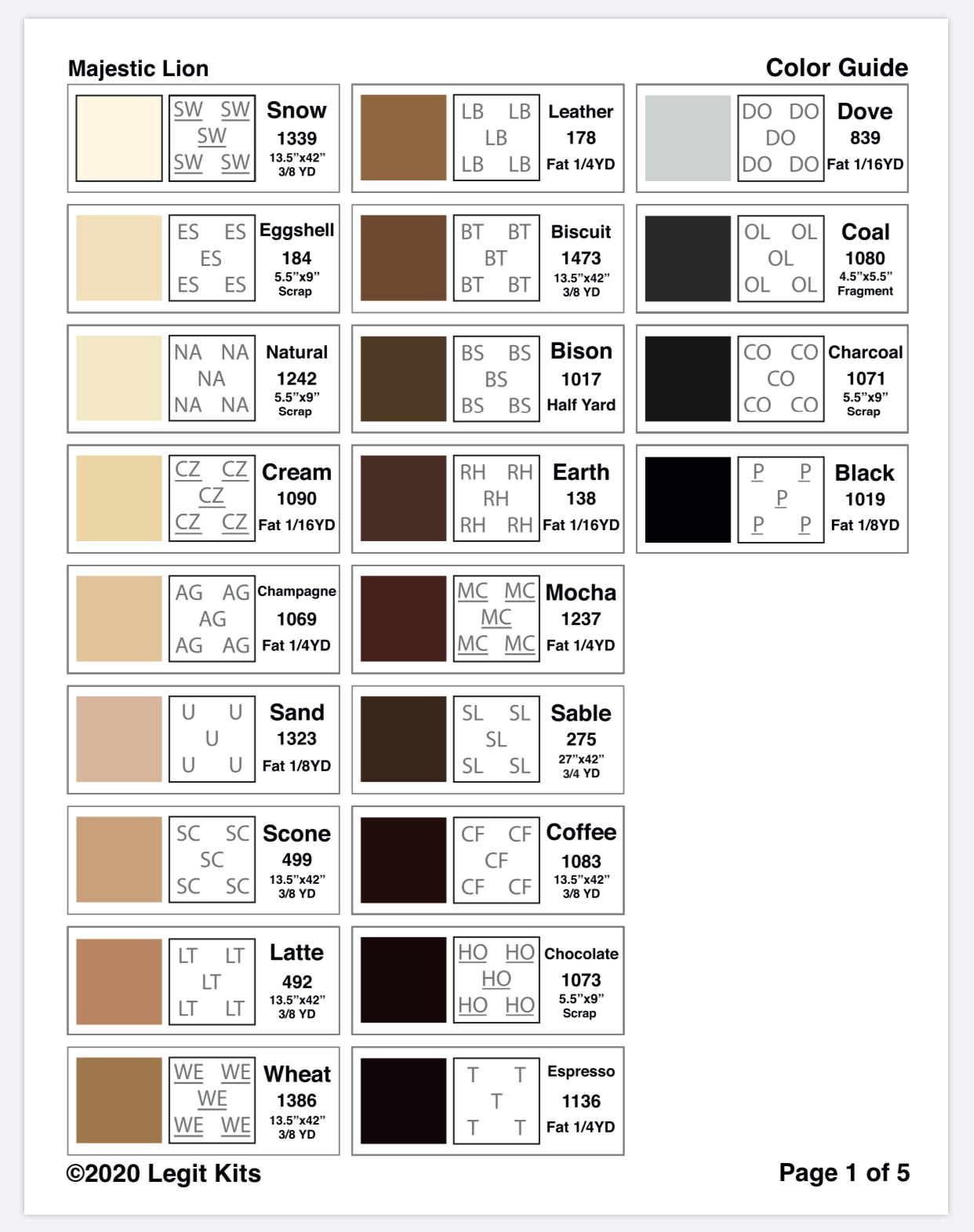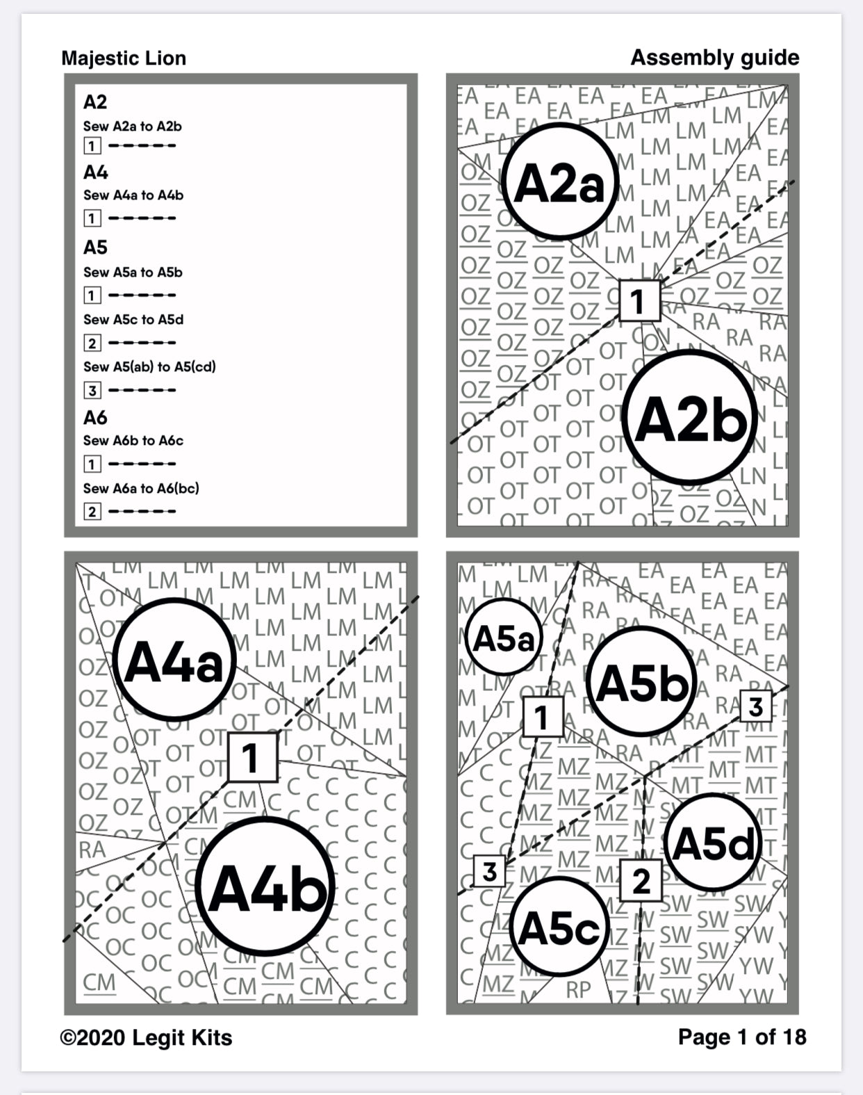 The KING of all lion quilts, Legit Lion is a premium design with everything a foundation paper piece quilter could want. This printed pattern pack contains color maps, fabric lists, an assembly guide and the full pattern printed on foundation paper. When completed, this full sized quilt top measures 60 inches wide by 80 inches long.