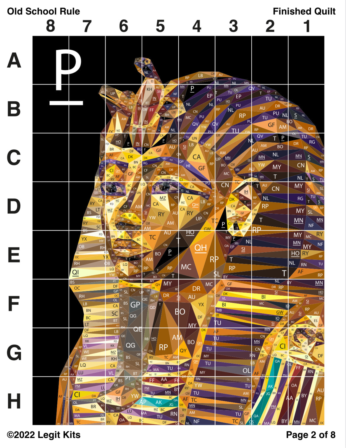 King Tutankhamen’s funerary mask gleams from the darkness. Old School Rule is a premium design with everything a foundation paper piece quilter could want. This treasure of a kit contains color maps, fabric lists, an assembly guide, the full pattern printed on foundation paper, and 93 different shades of Robert Kaufman Kona Cotton Solids to complete this full sized, 60 inch wide by 80 inch tall quilt top.