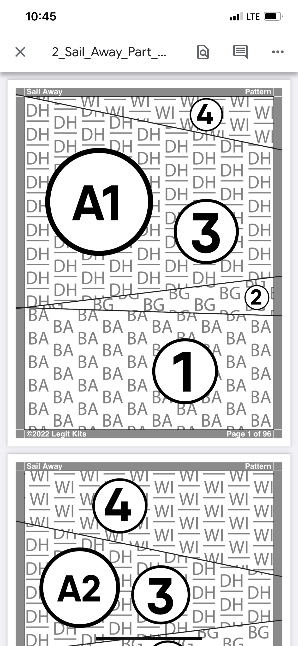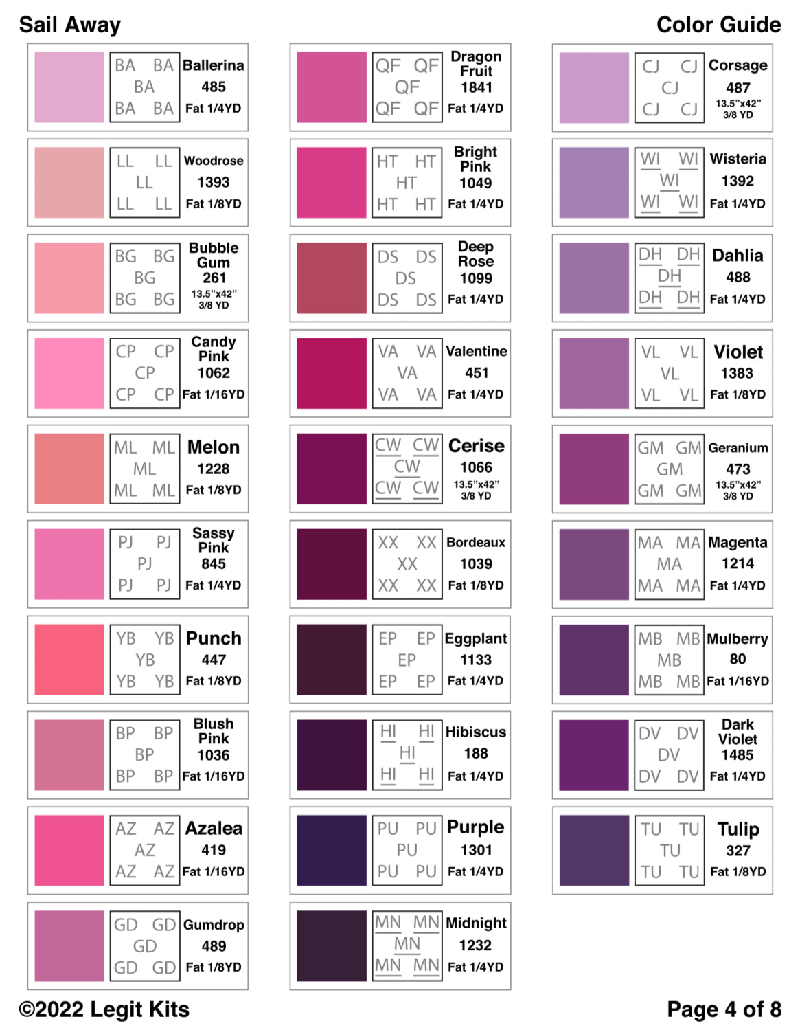 Cast off the dock lines and steady your course. Sail Away depicts a perfect cruise with vivid colors. This printed pattern contains color maps, fabric lists, an assembly guide, the full pattern printed on foundation paper, and the fabric list of all 63 shades of Robert Kaufman Kona Cotton Solids required to complete this full sized, 60 inch wide by 80 inch tall quilt top.