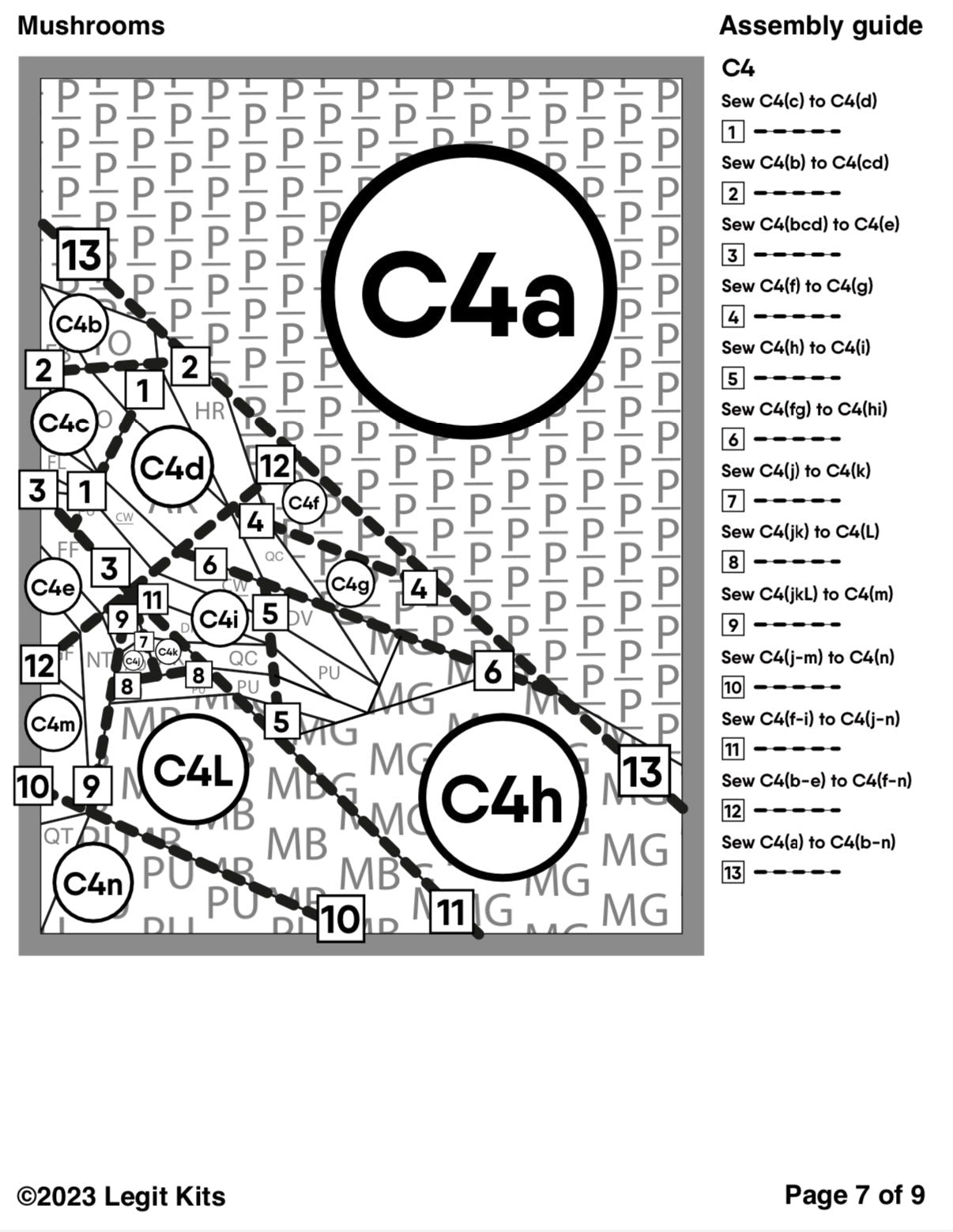 This kit contains color maps, fabric lists, an assembly guide, the full pattern printed on foundation paper, and clearly labeled, ample cuts of 29 different shades of Robert Kaufman Kona Cotton Solids to complete this medium sized, 30 inch wide by 40 inch long quilt top.