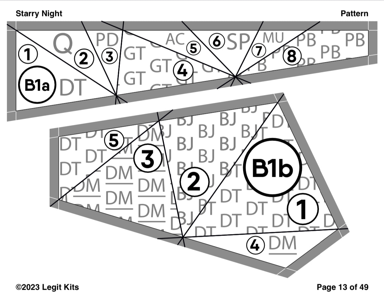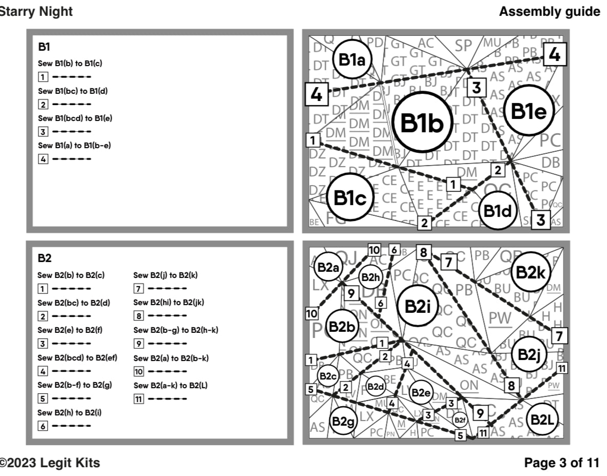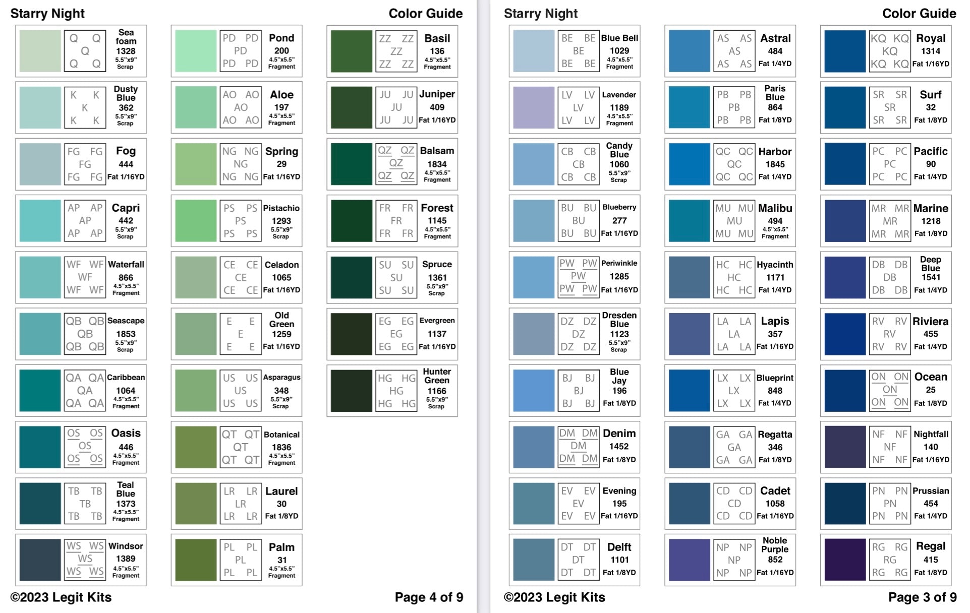 This kit contains color maps, fabric lists, an assembly guide, the full pattern printed on foundation paper, and clearly labeled, ample cuts of 105 different shades of Robert Kaufman Kona Cotton Solids to complete this medium sized, 40 inch wide by 30 inch long quilt top.